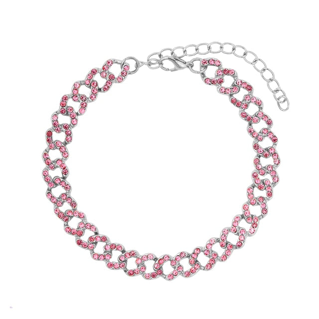 1*Baguette Cuban Anklets For Women Bling Cuban Link Foot Bracelet