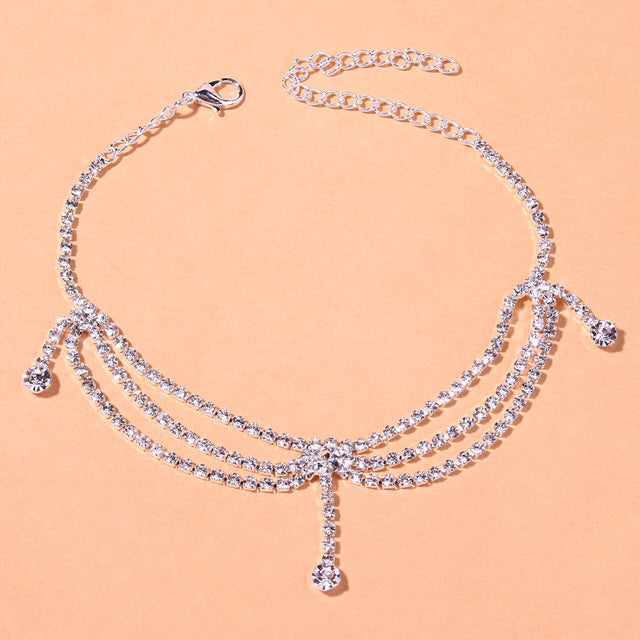 Rhinestone Tennis Chain Anklet Foot Simple Chain Leg Anklet Bracelet