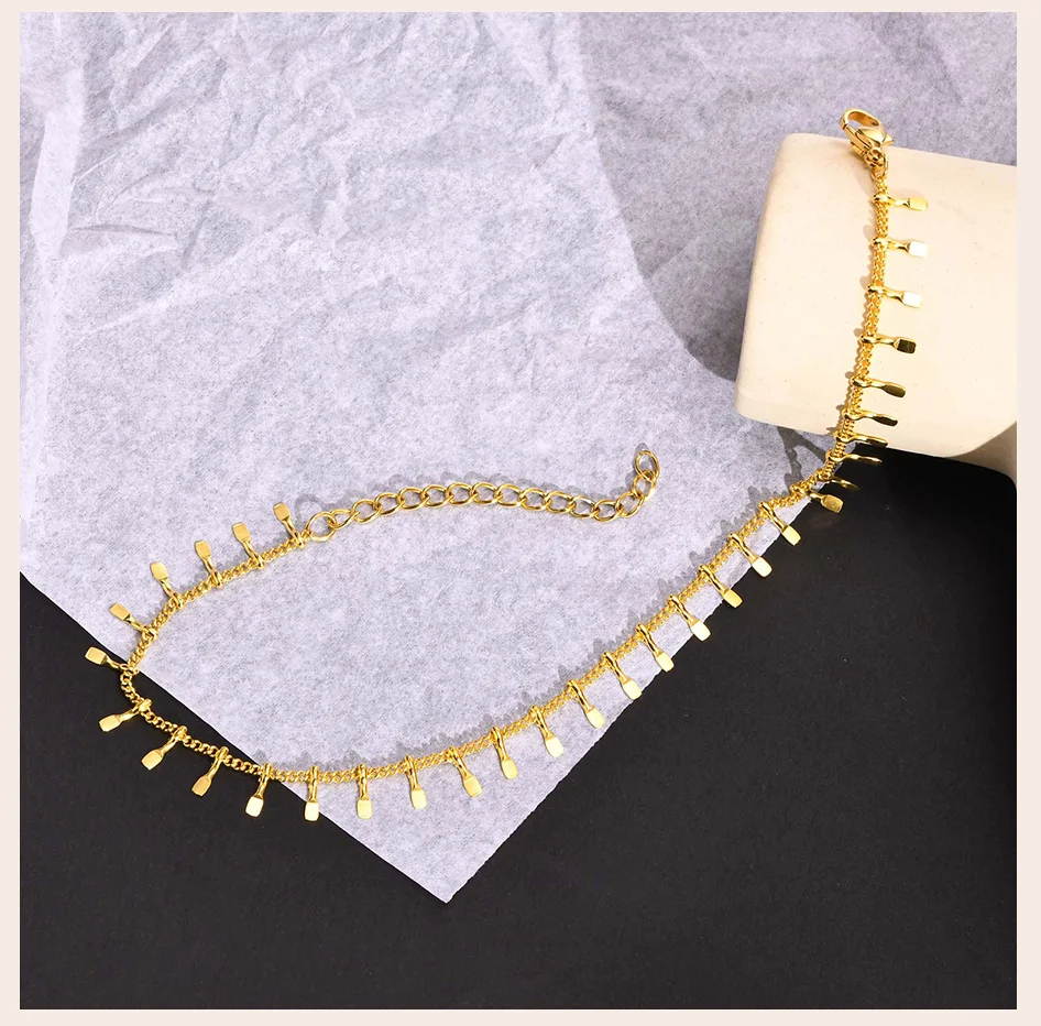 Stainless Steel Dangle Anklet for Women Fringe Chain Anklet Jewelry