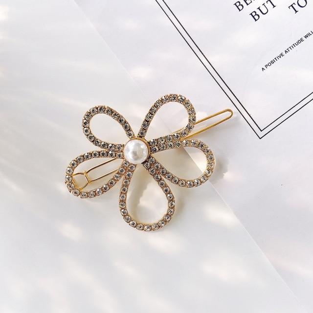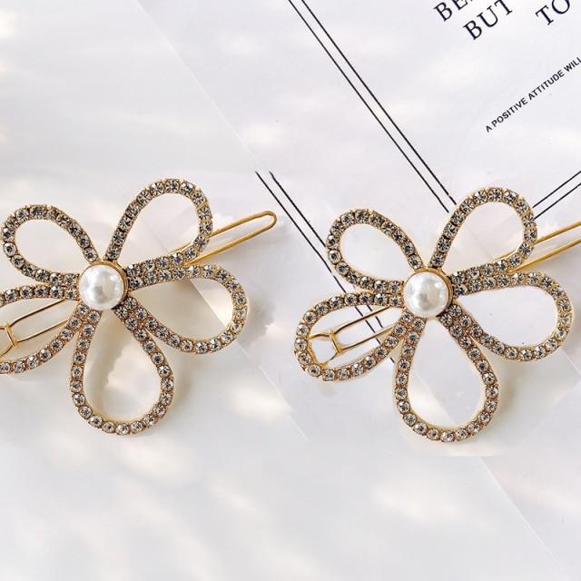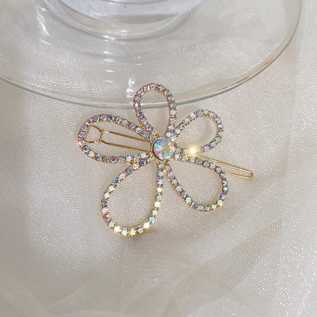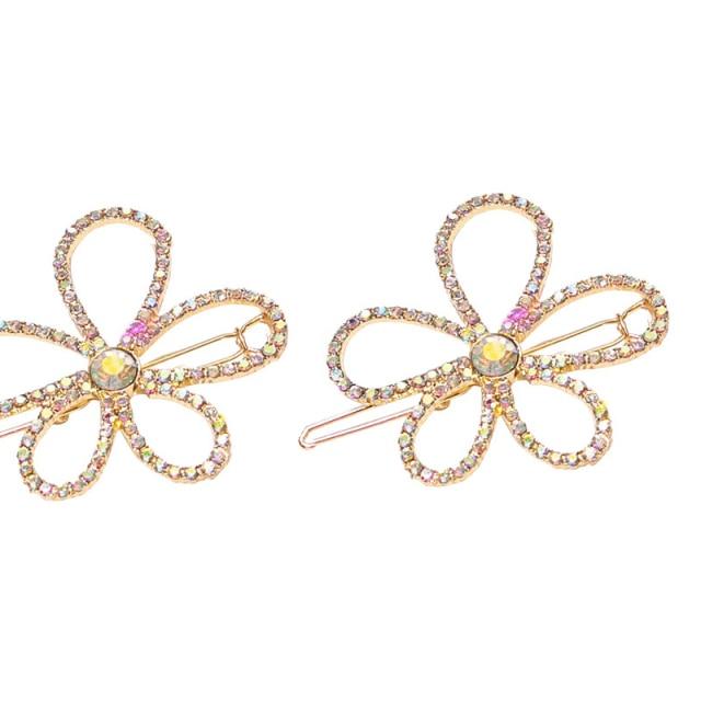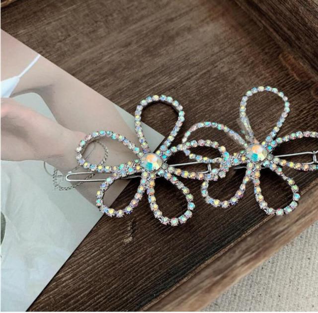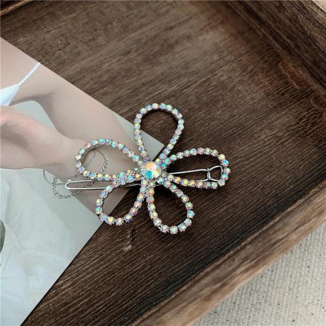 Crystal Flower Shape Hair Clip Pin Women Shiny Rhinestone Hair Clip