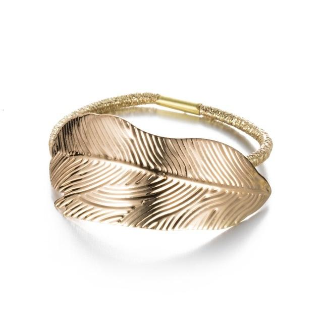 Getting ready in the morning will be more fun with a Leaf hairband. This hairband of Arimonz is made from braided leaf-patterned cotton and finished with copper-toned metal beads. Braided into elastic for a snug, comfortable fit. Add a natural element to your hairstyle!