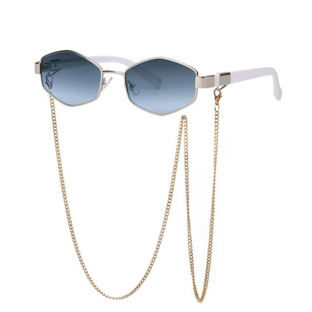 1 * Trendy Retro Hexagon With Chain Sunglasses Women Polygon Sun Glasses