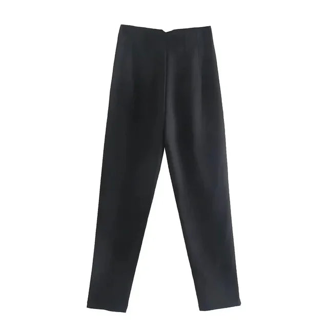 Elevate your office wardrobe with these High-Waist Formal Pants. Designed for the modern professional, these pencil trousers offer a sleek, tailored fit that flatters your silhouette while providing all-day comfort. The high-waisted design enhances your waistline and ensures a polished, refined look. Perfect for office wear, meetings, or any formal occasion, these pants are a versatile essential that pairs well with blouses, blazers, or any office outfit.