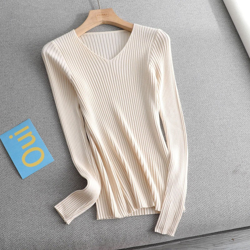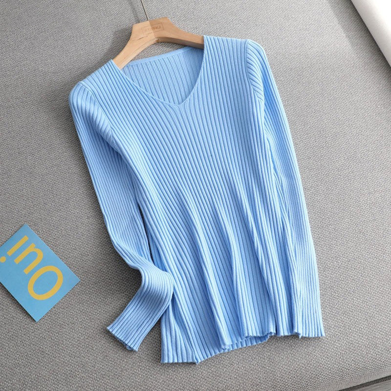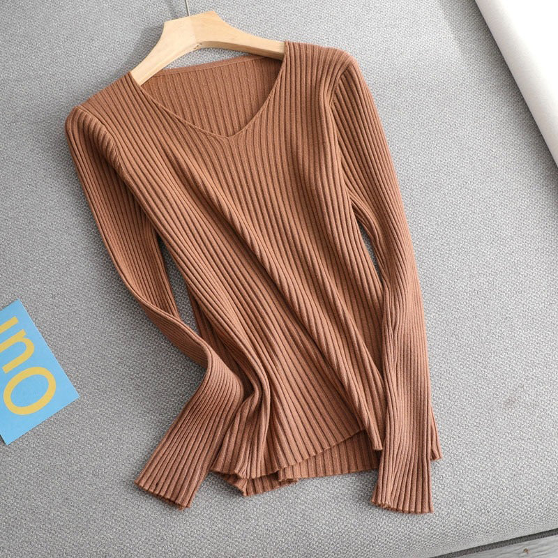 1 *Basic V-neck Solid Sweater Pullover Women Female Knitted Sweater