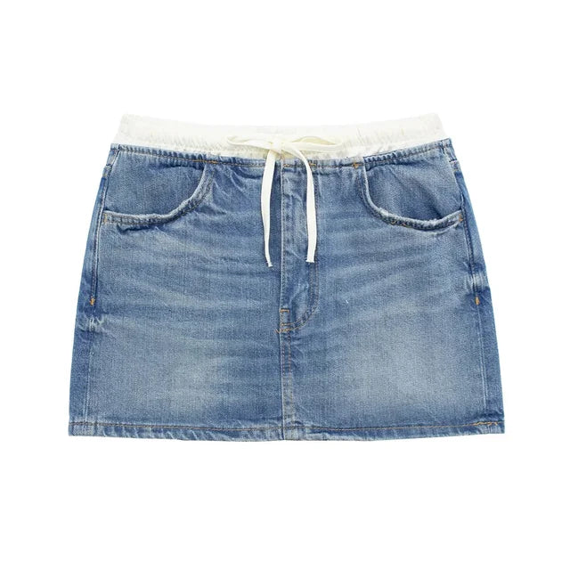 Versatile European And American Style Casual Patchwork Denim Skirt