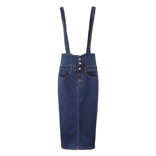 1*Button Tea Length Pencil Denim Skirts With Straps