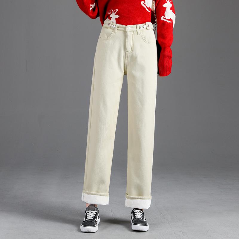 1*Comfortable Velvet Inside High Waist Push Up Straight Jeans