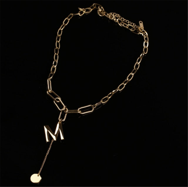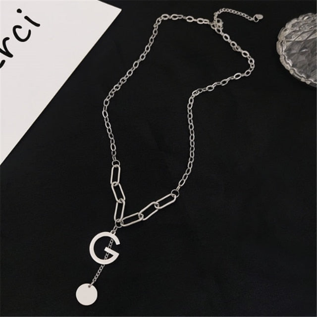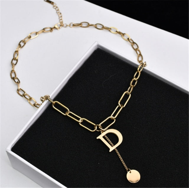 Double Necklace Retro Thick Chain Letter Banquet Women Necklace