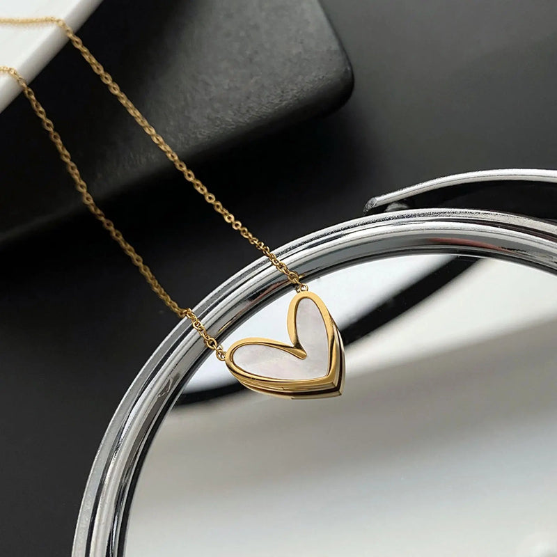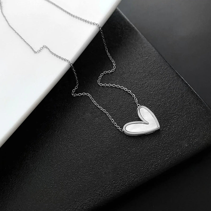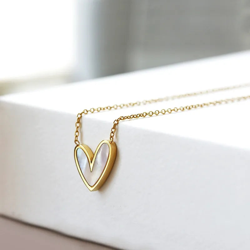 Elegant Heart-Shaped Pendant Necklace Stainless Steel Collarbone Chain
