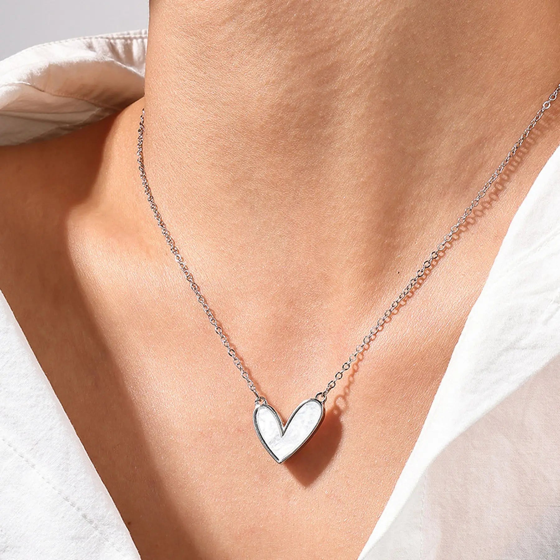 Add a touch of refined charm to your summer style with the Elegant Heart-Shaped Pendant Necklace Stainless Steel Collarbone Chain from Arimonz. Crafted from high-quality stainless steel, this necklace features a delicate heart-shaped pendant symbolizing sweetness and elegance. Its sleek collarbone-length design makes it the perfect accessory for warm-weather outfits, from casual dresses to chic evening looks.