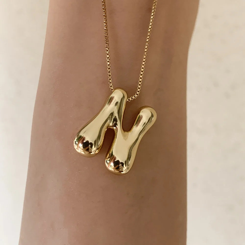 Show off your personality with this Balloon Letter A–Z Pendant Necklace with Stainless Steel Figaro Chain from Arimonz, designed to make a bold and playful statement. Featuring a smooth bubble-style initial pendant (A–Z) crafted from durable stainless steel, this chunky necklace blends fun design with modern fashion appeal.