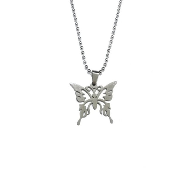 Sweet Butterfly Stainless Steel Pendant Ball Chain Necklace