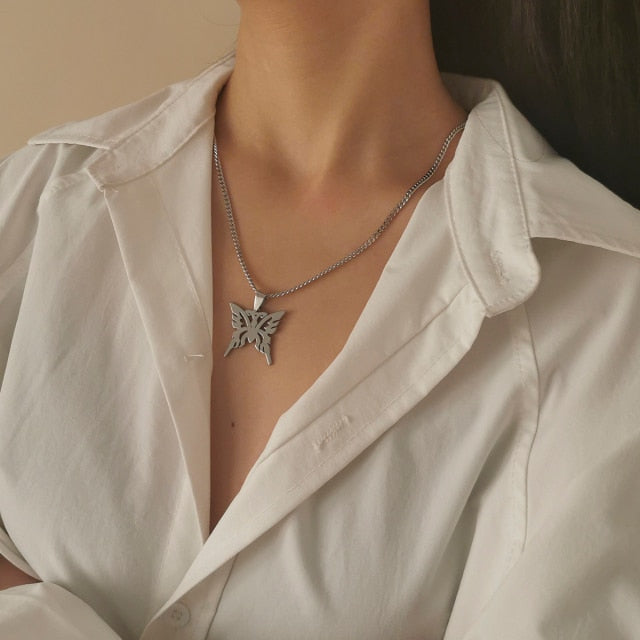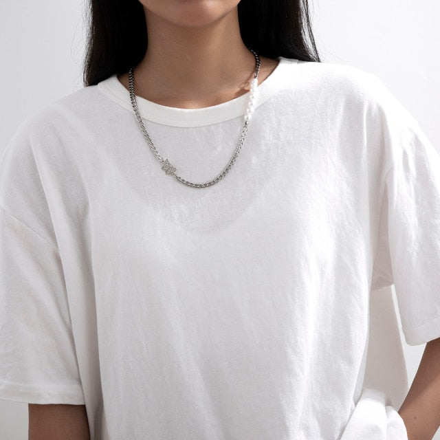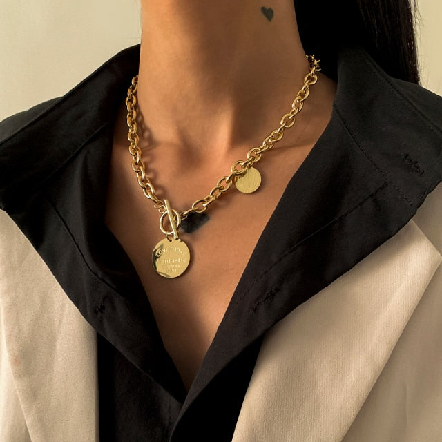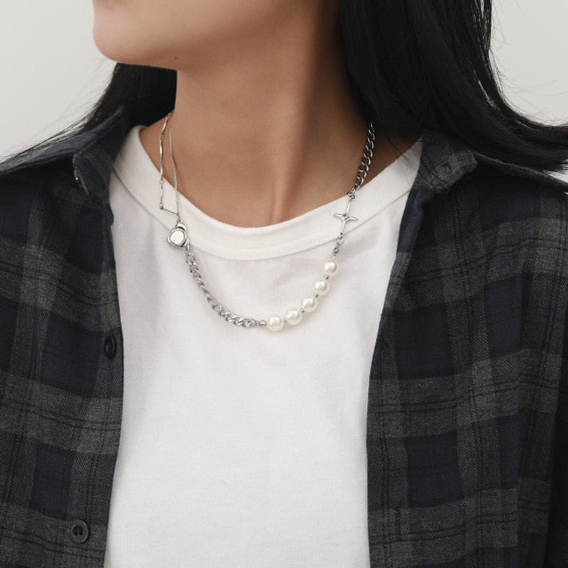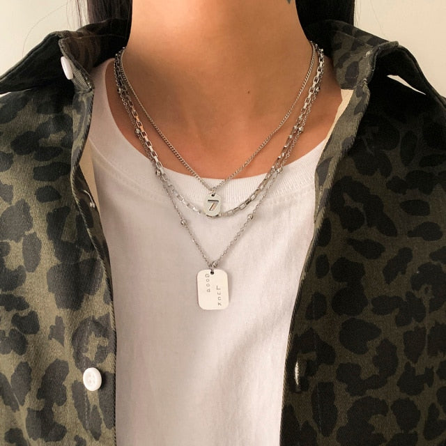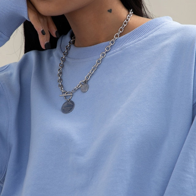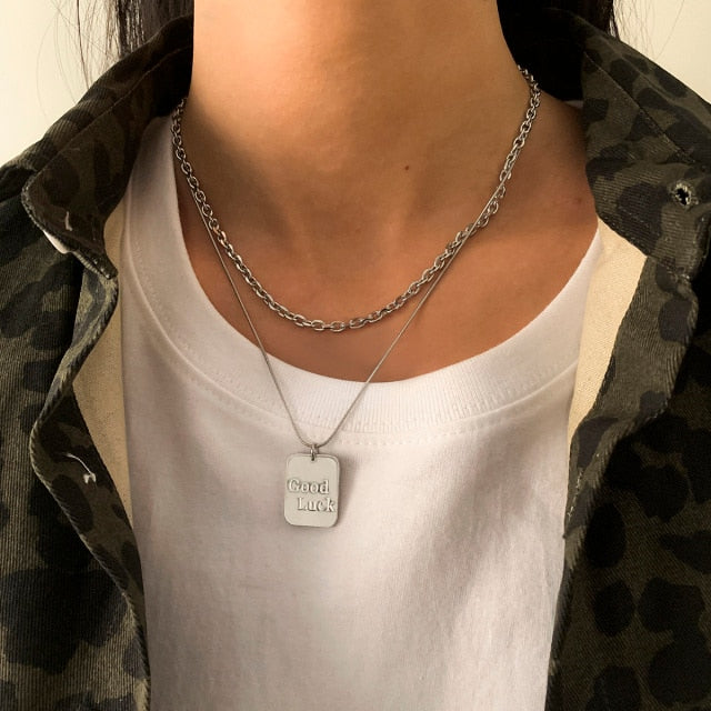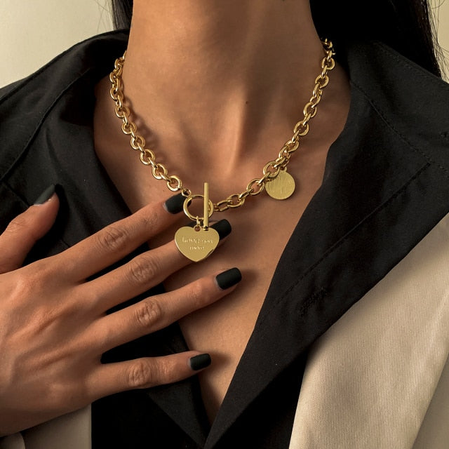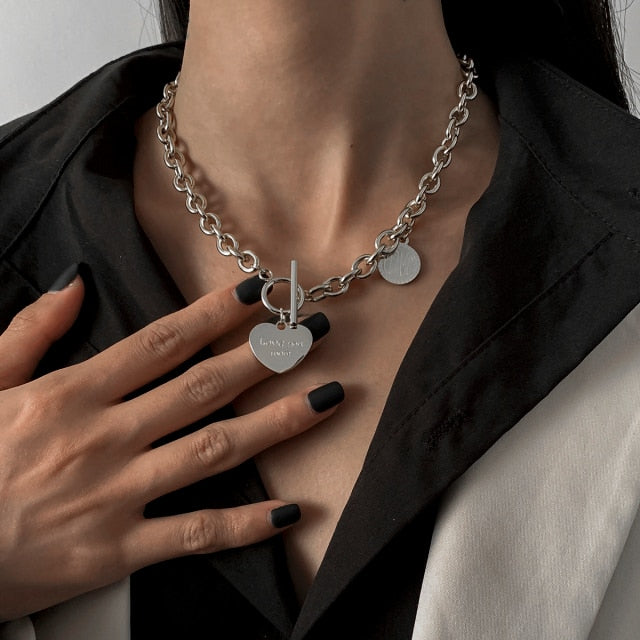 Women Stainless Steel Heart Pendant Necklace Lock Key Chain Necklace