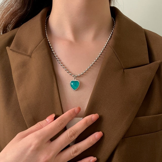 1*Women Stainless Steel Heart Pendant Necklace Lock Key Chain Necklace