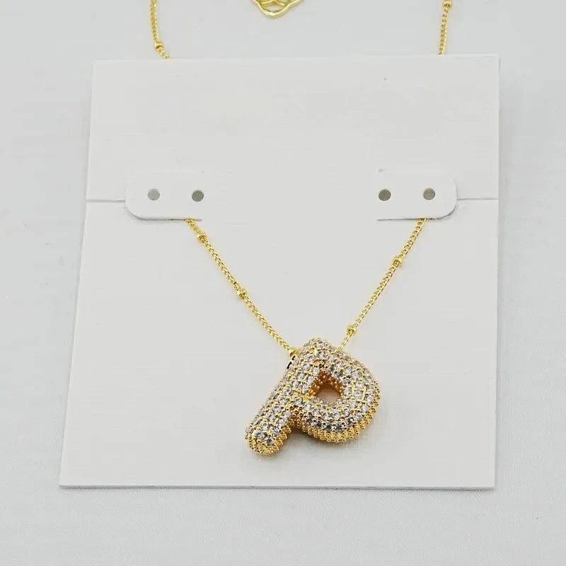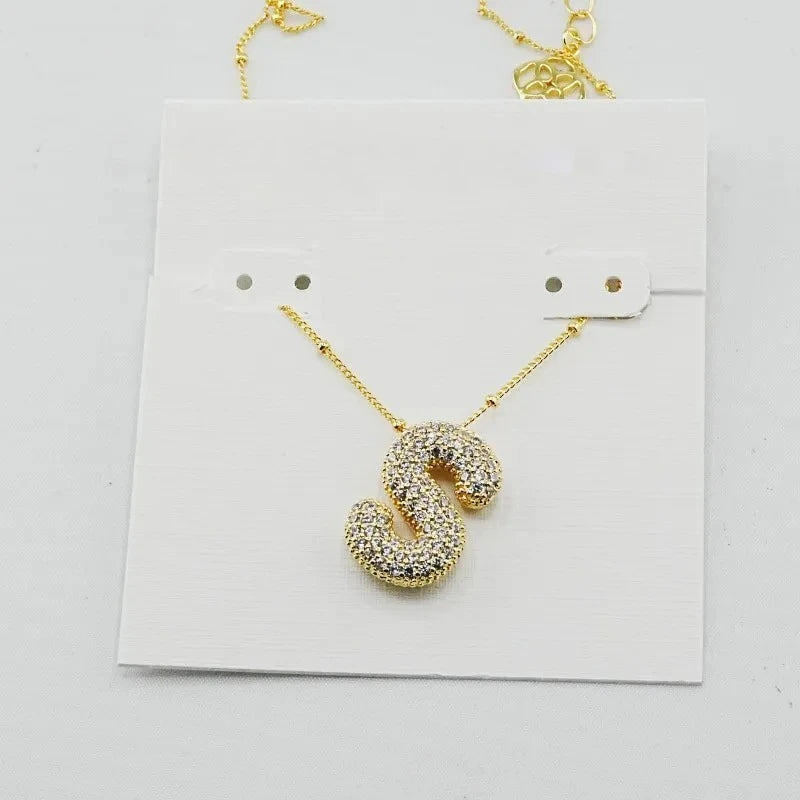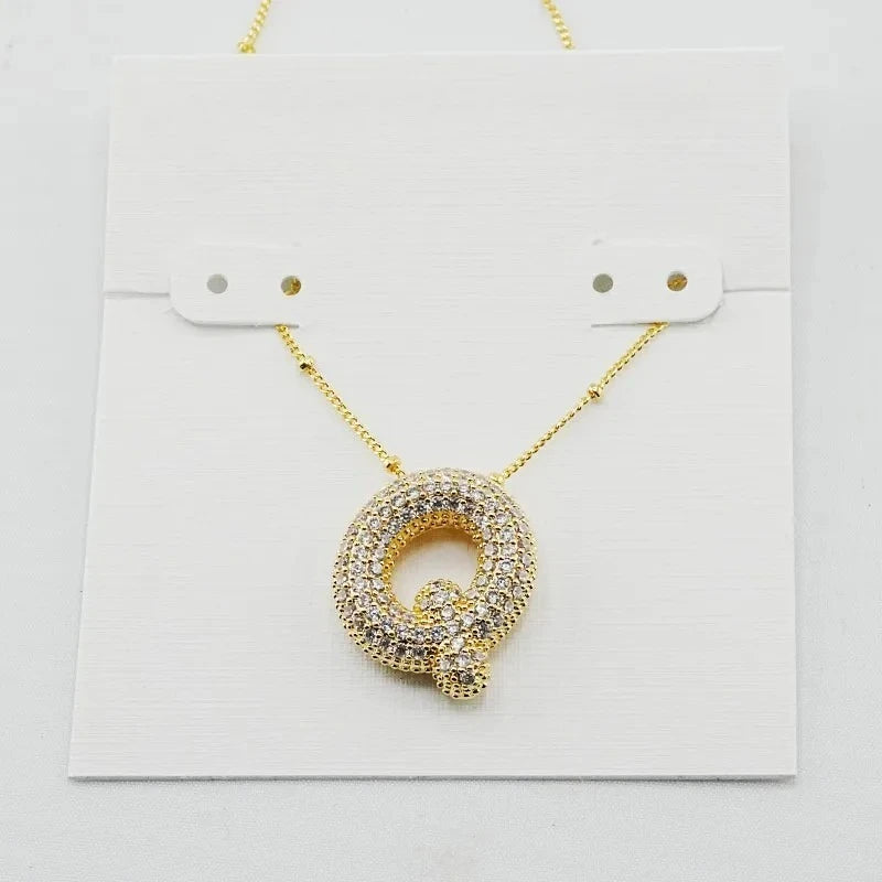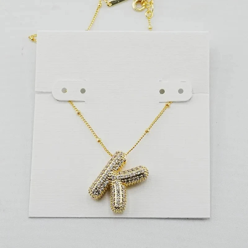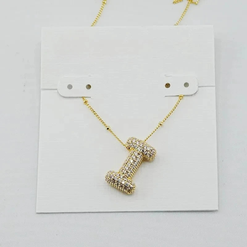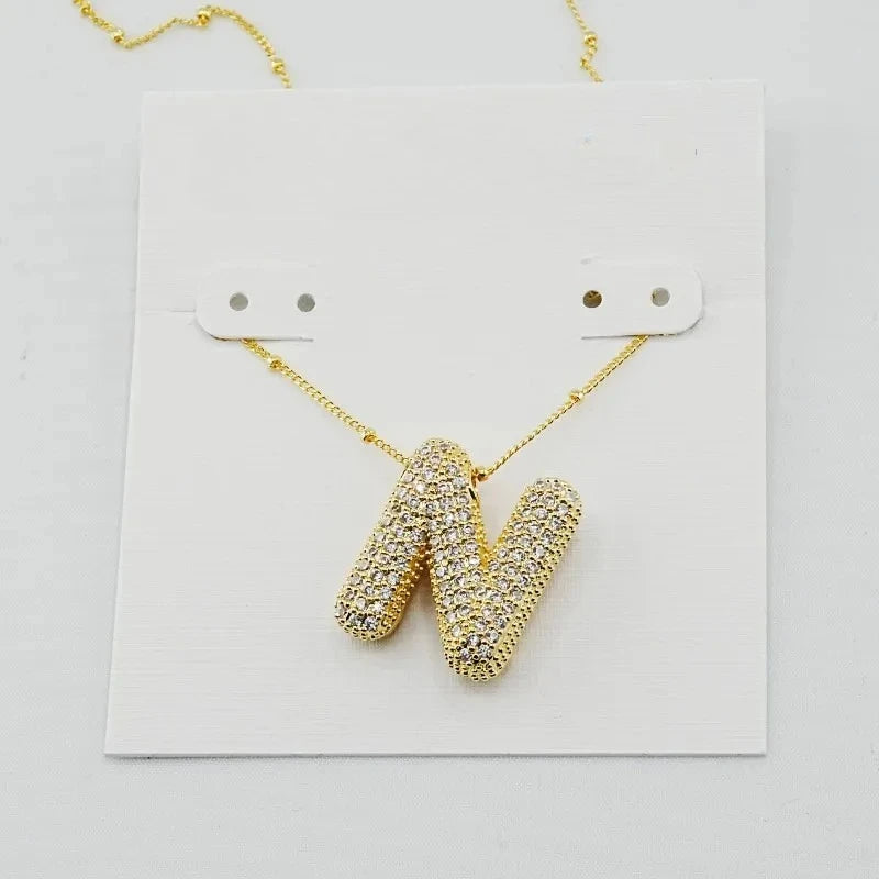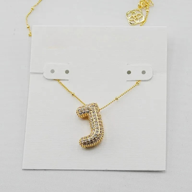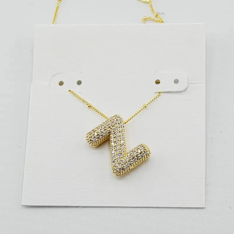 1 * Letter Cubic Zirconia Inlaid Initial A–Z Short Pendant Copper Necklace