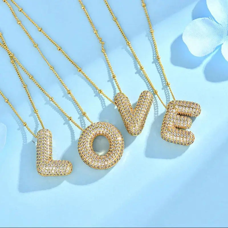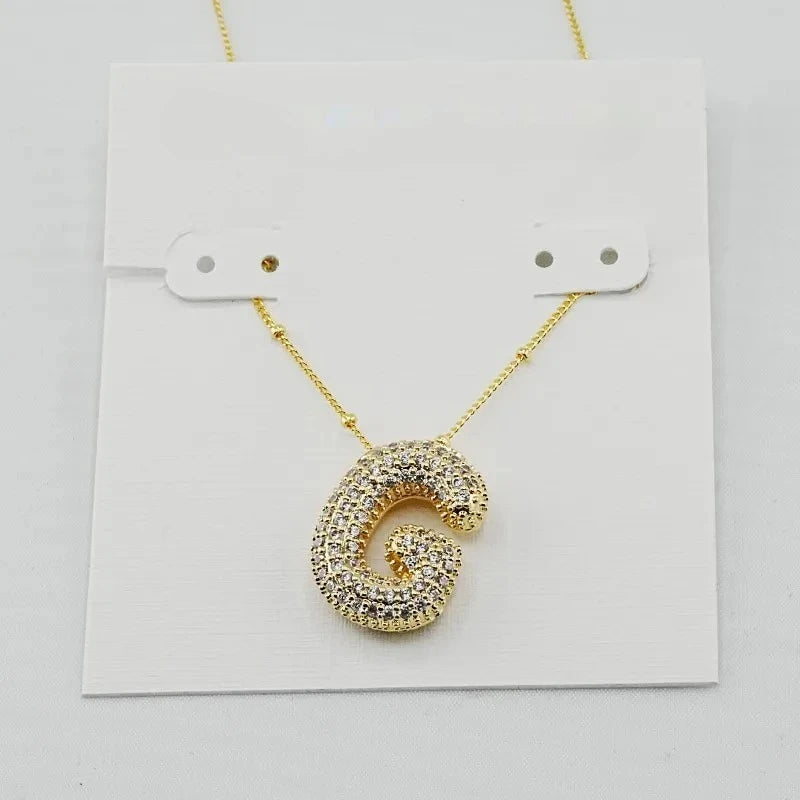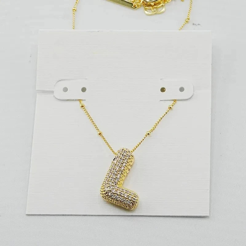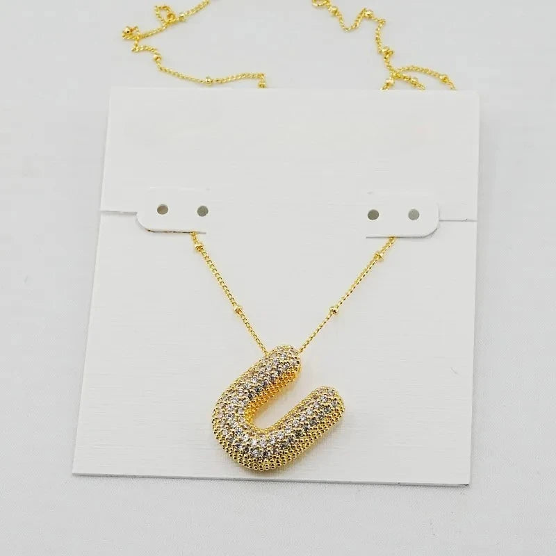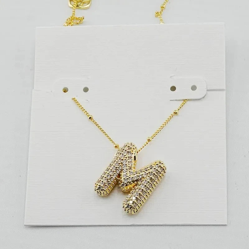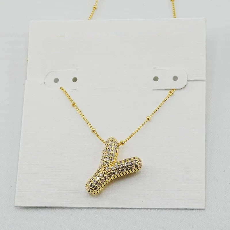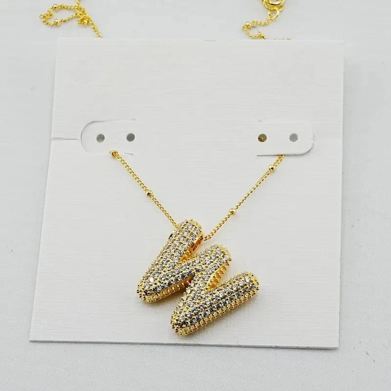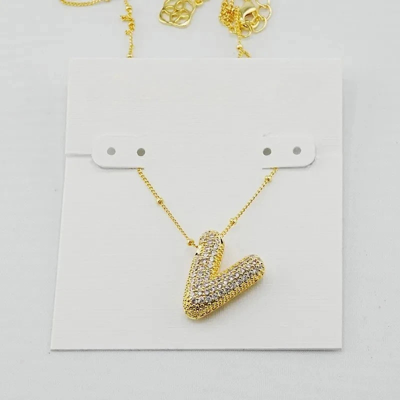 1 * Letter Cubic Zirconia Inlaid Initial A–Z Short Pendant Copper Necklace
