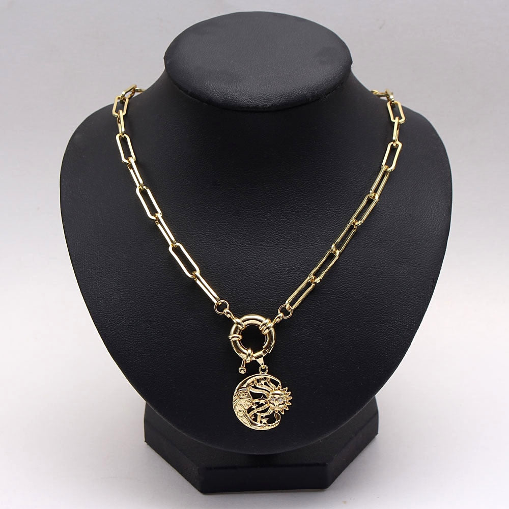 1*Zircon Moon Pendant Necklace Unique Design Chunky Chain Necklace