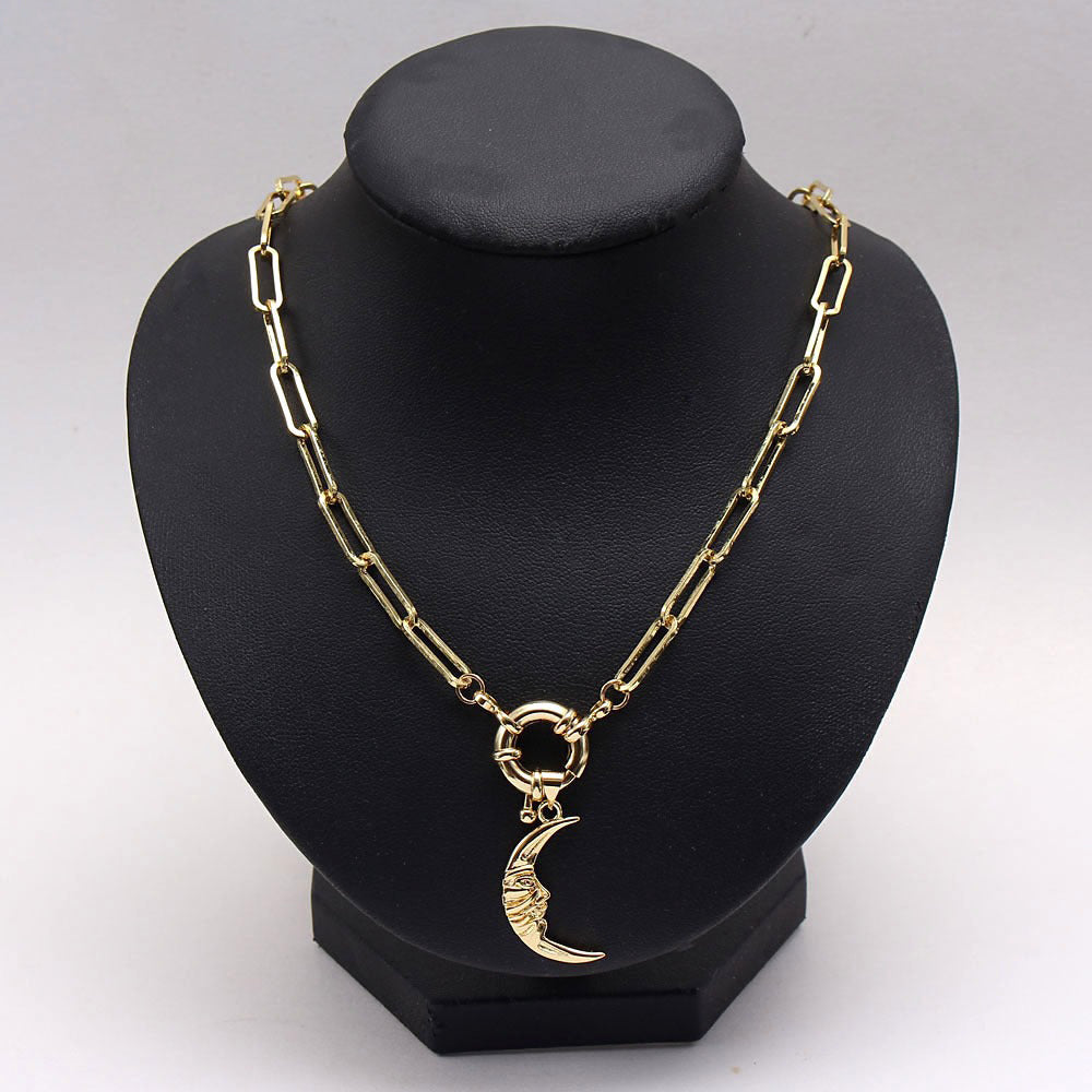 Zircon Moon Pendant Necklace Unique Design Chunky Chain Necklace