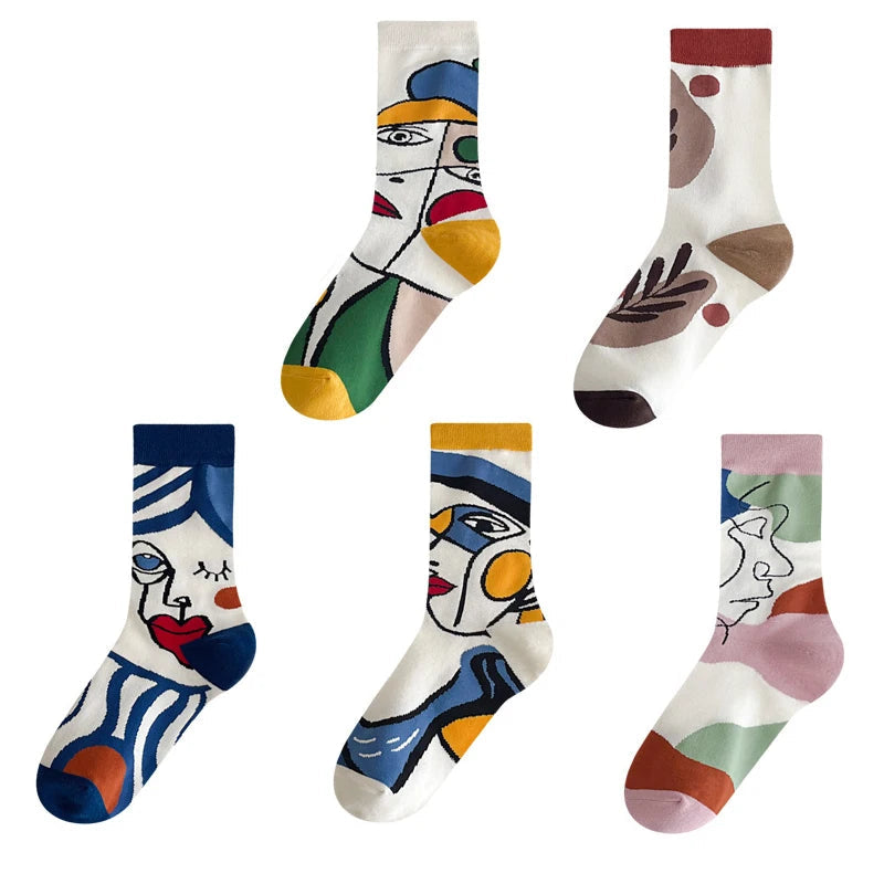1 *Trendy Personality Tide 5 Pairs Graffiti Unisex Cotton Couple Socks