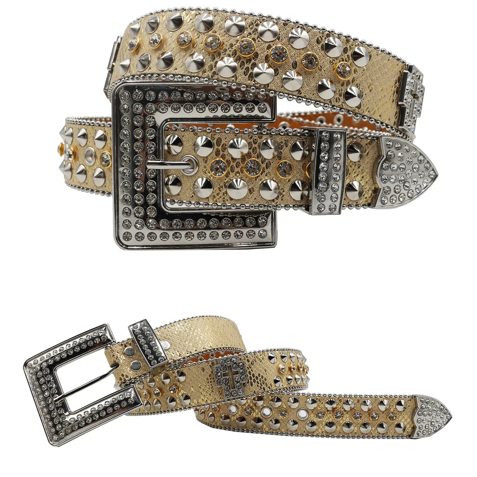 1 *Diamond Rhinestone Belts Fashion Crystal Studded Pin Buckle Belt