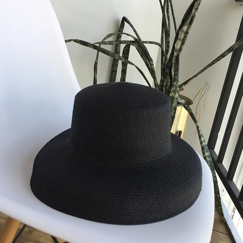 Vintage Audrey Hepburn Straw Big Brim Bell-shaped Summer Sun Hat
