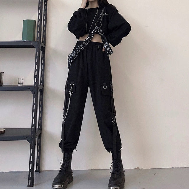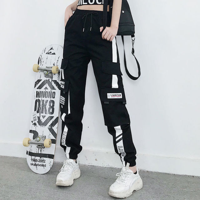 Big Pockets Cargo Pants Women High Waist Loose Streetwear Pants