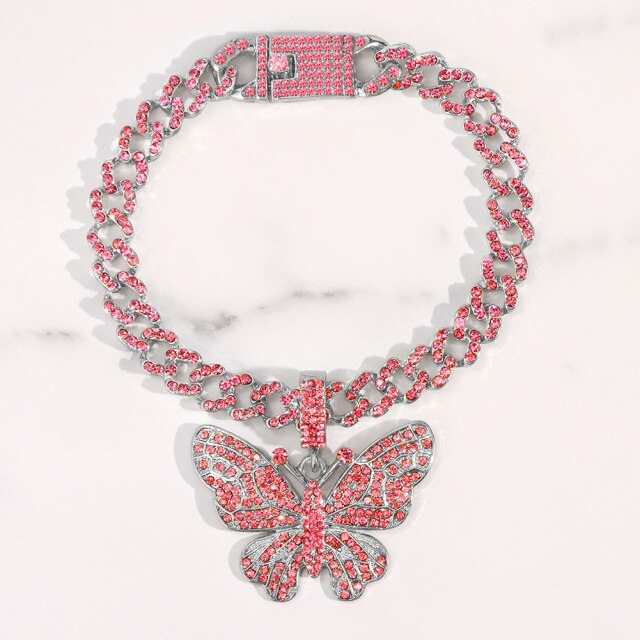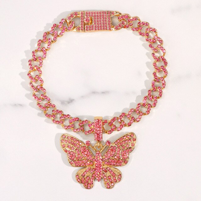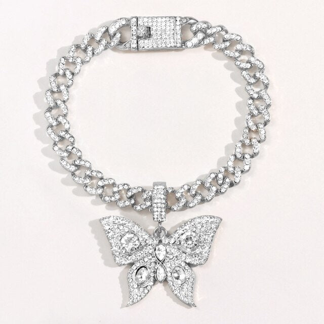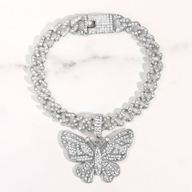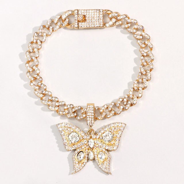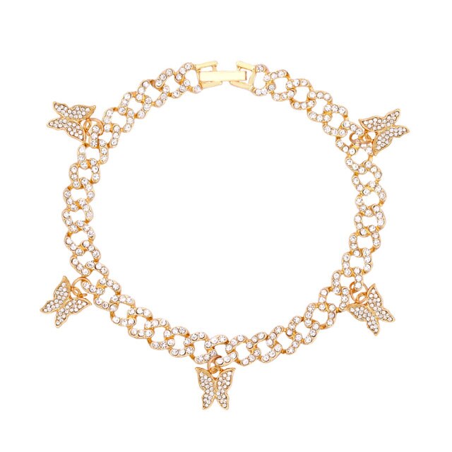Bling Rhinestone Butterfly Cuban Anklets Bracelet Chunky Cuban Anklet