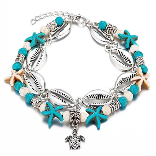 1*Bohemian Crystal Stones Anklets for Women Double Chain Women Jewelry