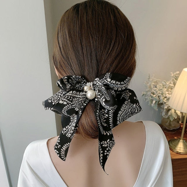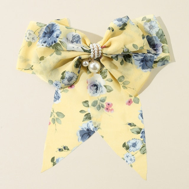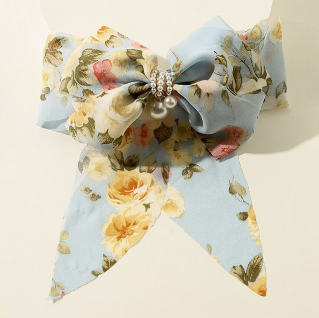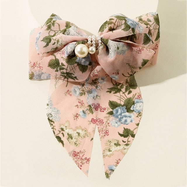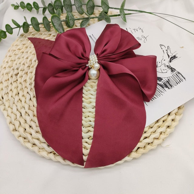 Bowknot Pearl Barrettes Clips Women Ribbon Hair Accessories