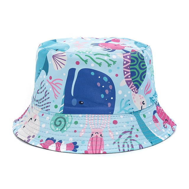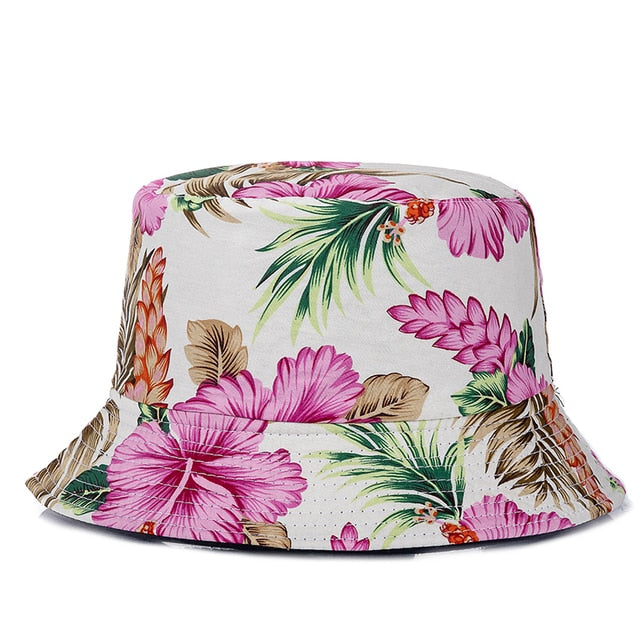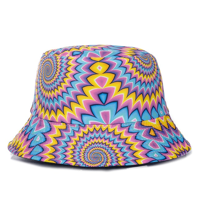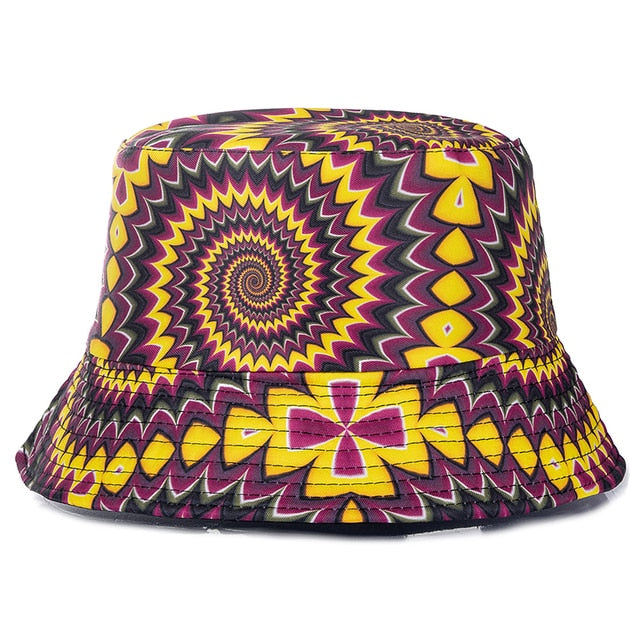 Bucket Hats Reversible Flower Geometric Printing Women Outdoor Hat