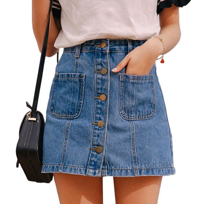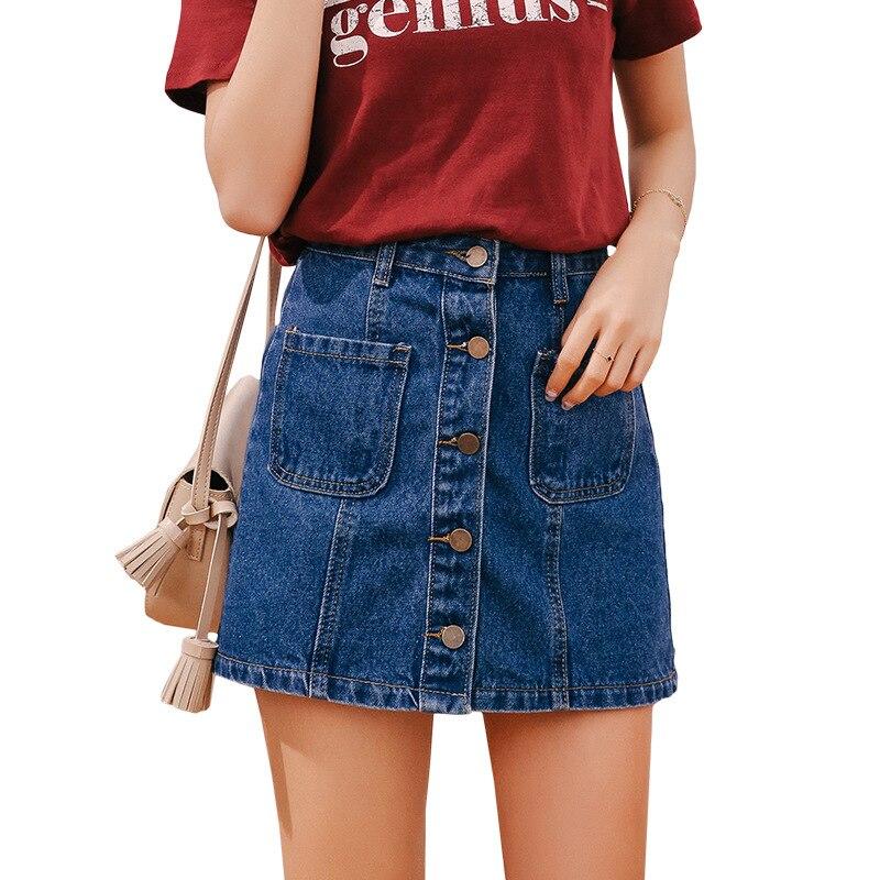 1*Button High Waist A-line Mini Denim Skirts With Strap