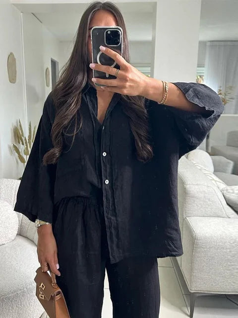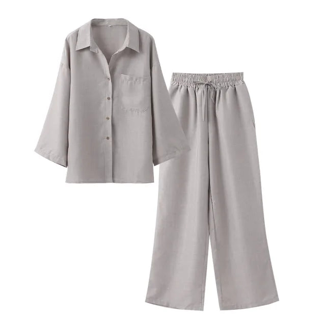 Enjoy effortless comfort and style with the Casual Cotton Linen Shirt and Pant Set. This two-piece ensemble features a single-breasted, collared shirt paired with matching pants, crafted from a breathable cotton-linen blend. The shirt’s button-down design adds a classic touch, while the relaxed fit of the pants ensures all-day comfort. Perfect for casual outings, travel, or lounging, this set offers a laid-back yet polished look.