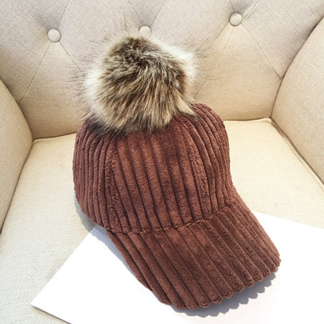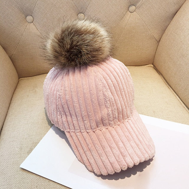 1 *Corduroy Hair Ball Women Hat Cap Adjustable Baseball Caps Female Hat