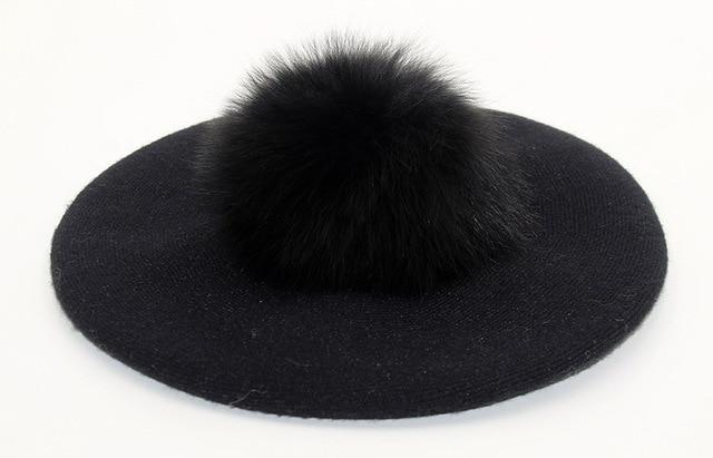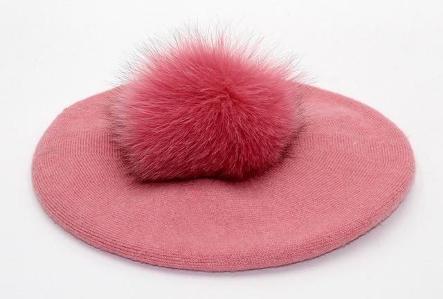1 *Elizabeth Knitted Wool Beret with Pompom