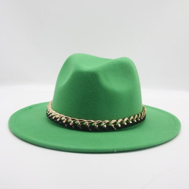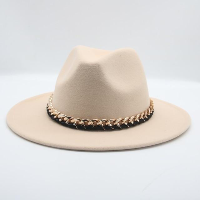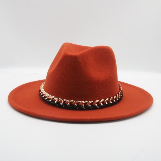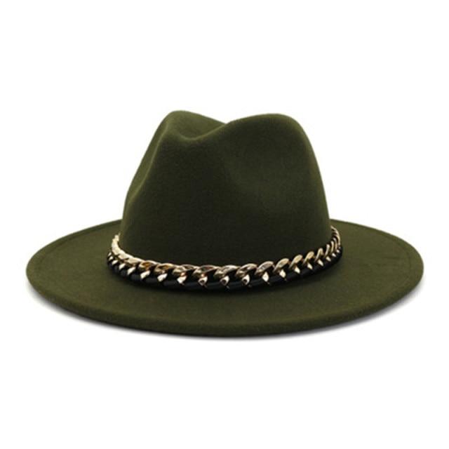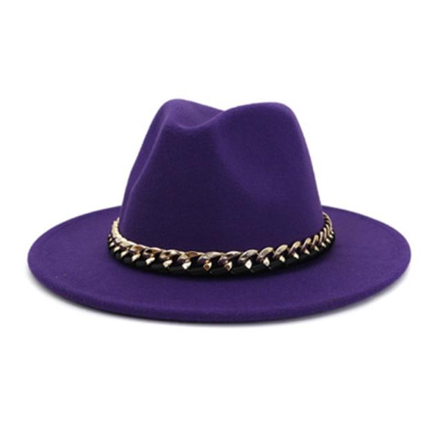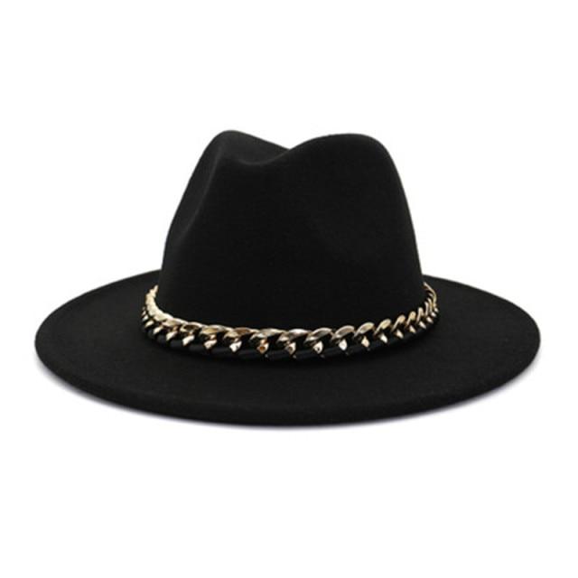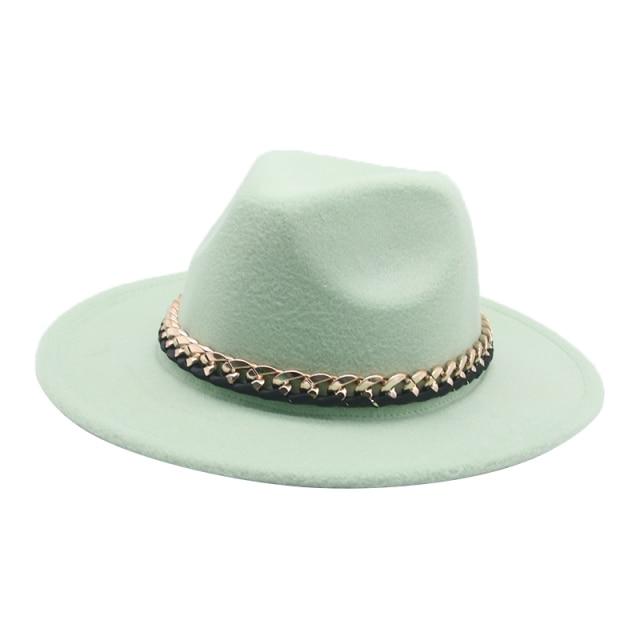 1*Fashionable Fedoras For Women Felted Chain Belt Casual Hats For Women