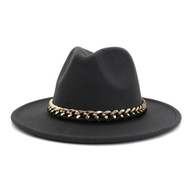 Fashionable Fedoras For Women Felted Chain Belt Casual Hats For WomenThis luxurious and casual felt hat for women looks chic and worn with any outfit, thanks to the beautiful blend of wool.Fashionable Fedoras For Women Felted Chain Belt Casual Hats For WomenWhether you use it to dress up your outfit on a cold day or simply as a fashionable accessory, this women's fedora hat is just perfect!Fashionable Fedoras For Women Felted Chain Belt Casual Hats For WomenShow your personal taste by considering this fedora hat as a part of your clothing collection during the cold winter days!Fashionable Fedoras For Women Felted Chain Belt Casual Hats For Women