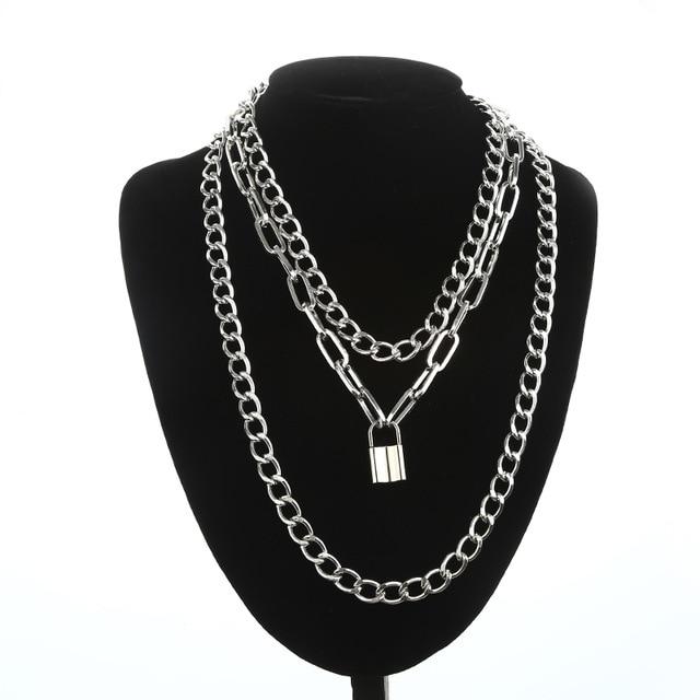 Fashionable Necklace Layered Chain Necklace Lock Pendant Jewelry For Women
