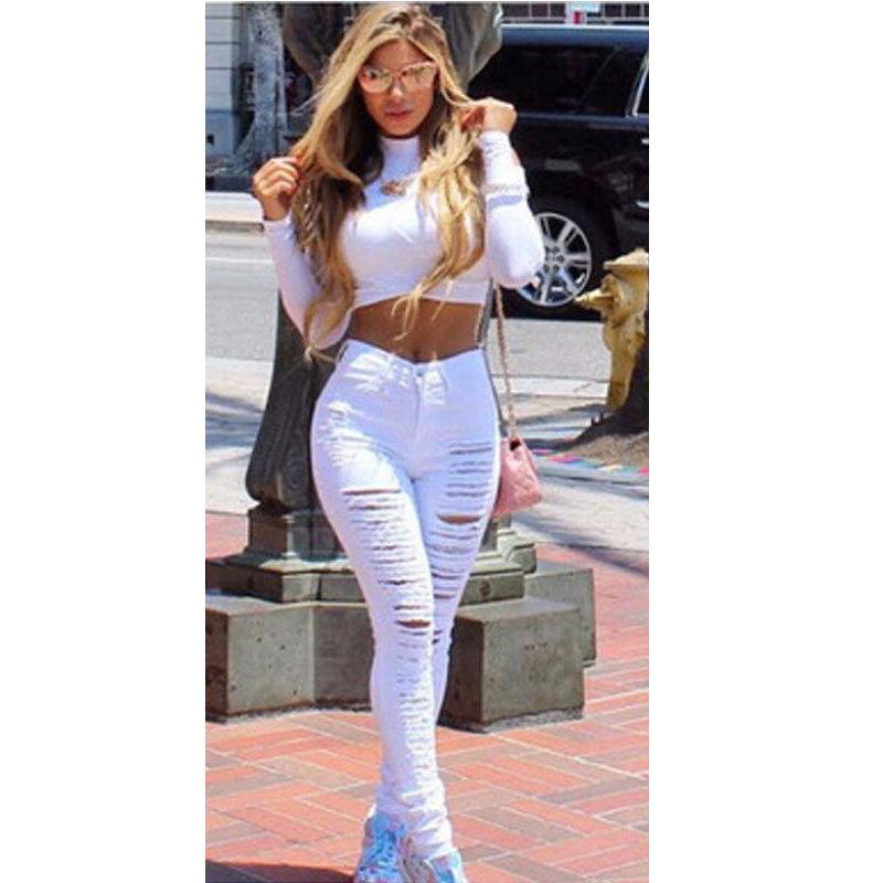 Slaying the streets while looking smoking hot and fashionable with High Waist Denim Ripped Jeans.