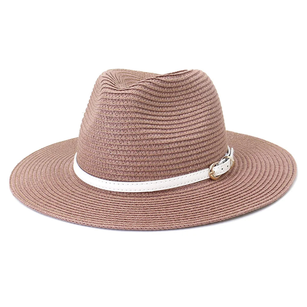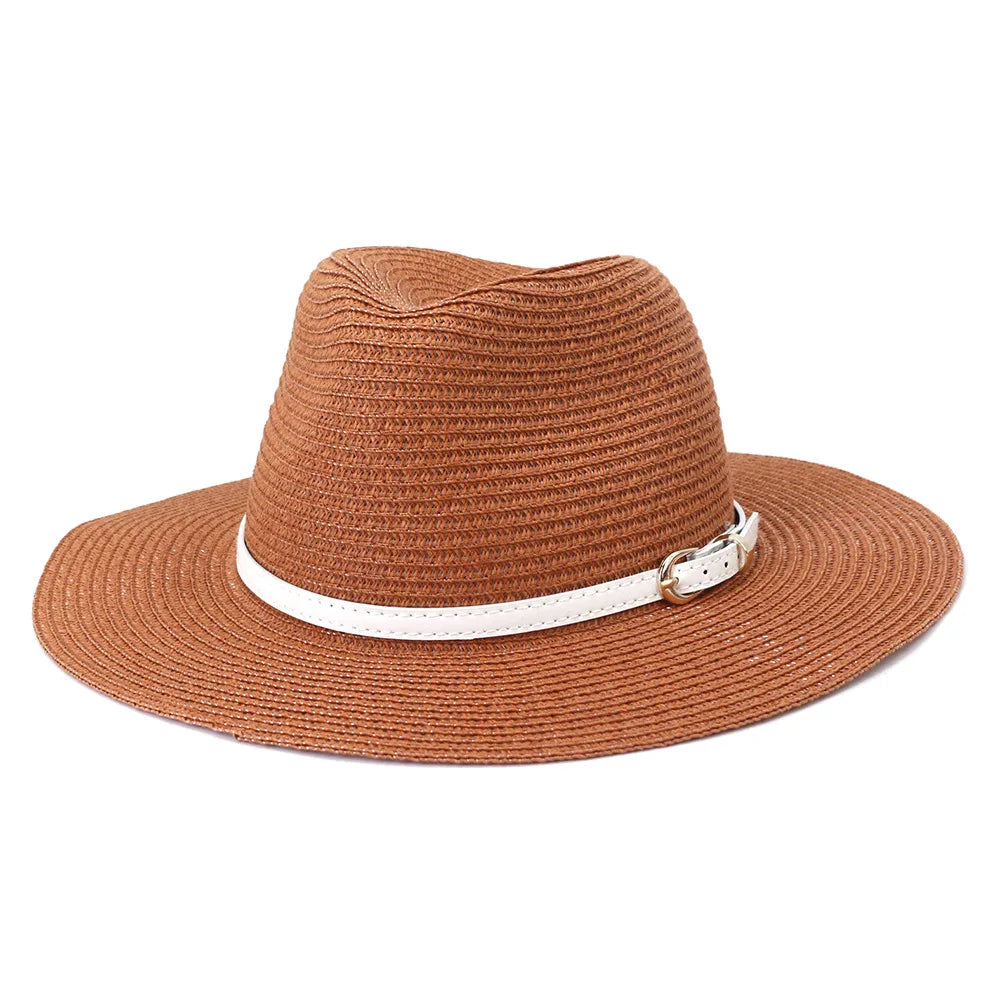 Panama Straw Hat with Belt Cowboy Style Men Women Summer Hat