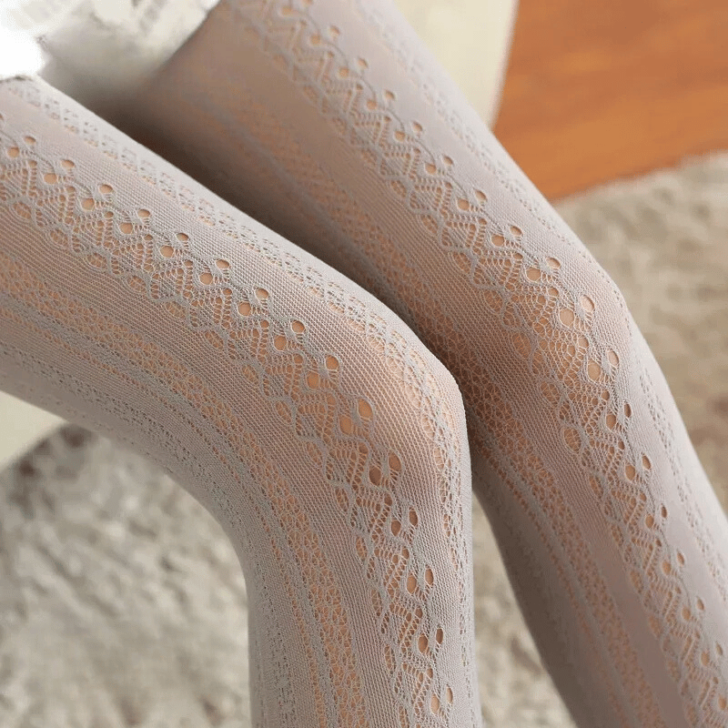 1 * Lace Knitted Cotton Tights Hollow Out Striped Stockings Pantyhose