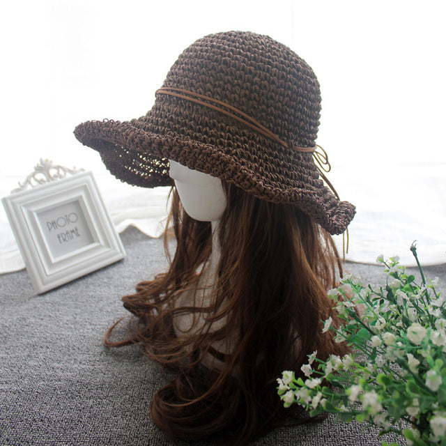 Ladies Sun Hat For Women Bowknot Raffia Straw Hat Foldable Summer Hat
