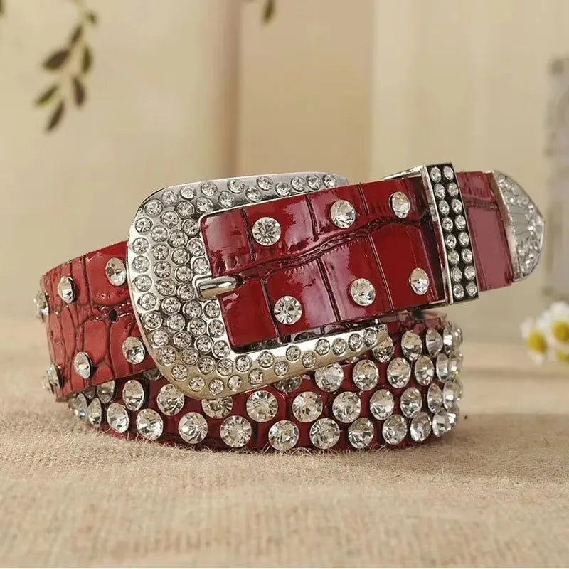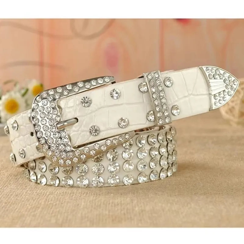 Women’s Leather Rhinestone Belt Fashionable Pin Buckle Design