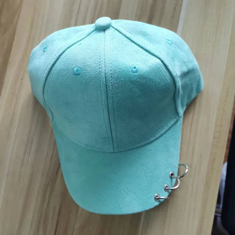1 *Plain Suede Baseball Cap with Iron Ring Adjustable Peaked Snapback Hat