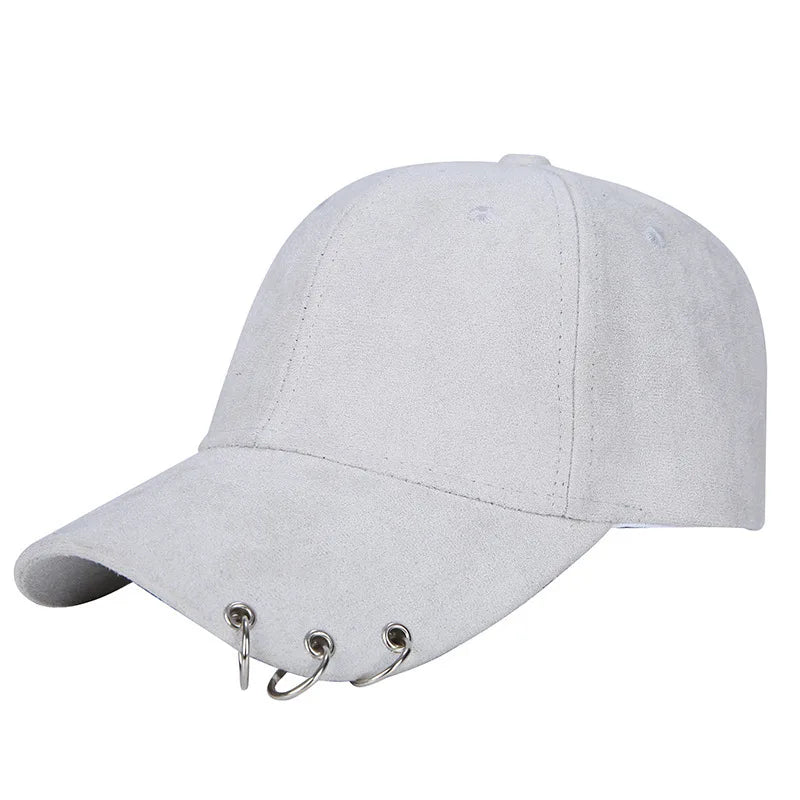 Plain Suede Baseball Cap with Iron Ring Adjustable Peaked Snapback Hat