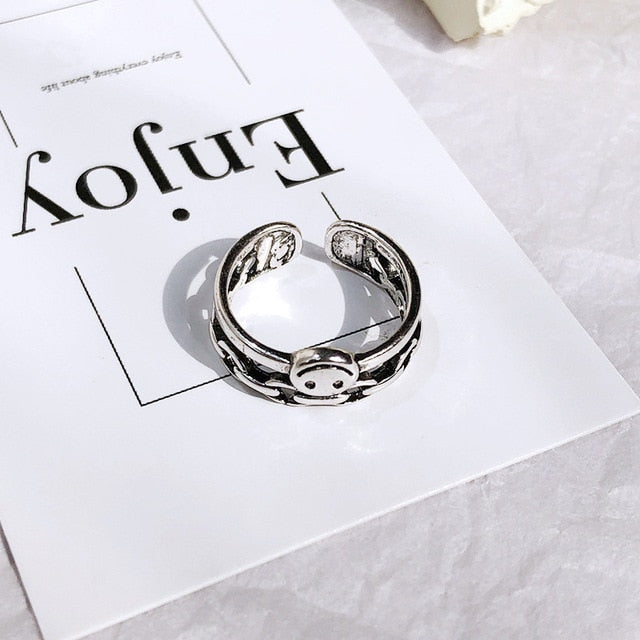 Retro Neutral Multi-layer Smiley Face Wide Ring for Women