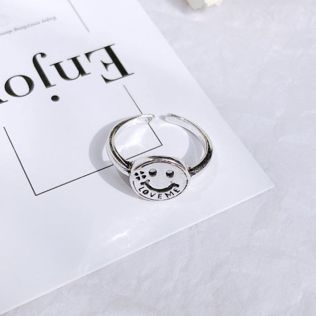 1*Retro Neutral Multi-layer Smiley Face Wide Ring for Women