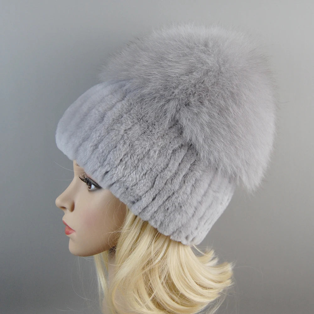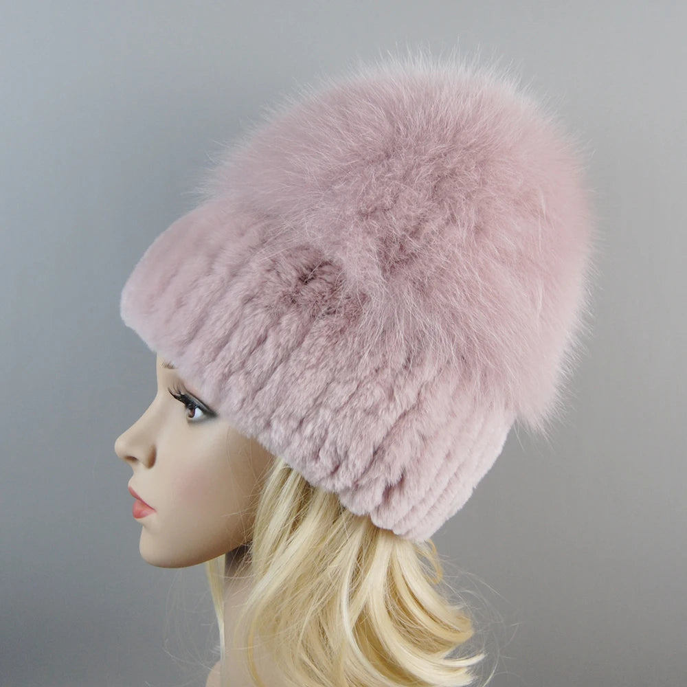 Winter Warm Real Fur Genuine Hat Bomber Beanies Cap for Women