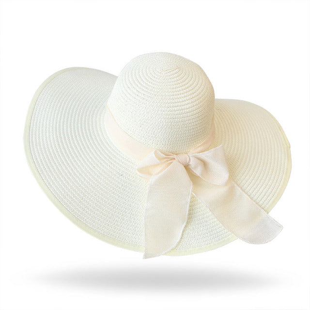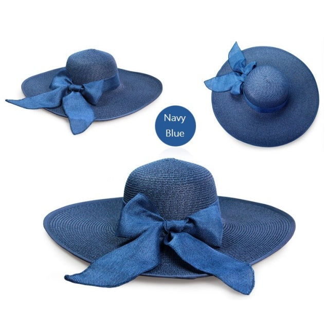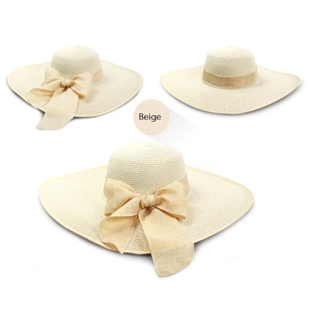 1 *Summer Women Bowknot Wide Brim Panama Hat Outdoor Foldable Beach Hat