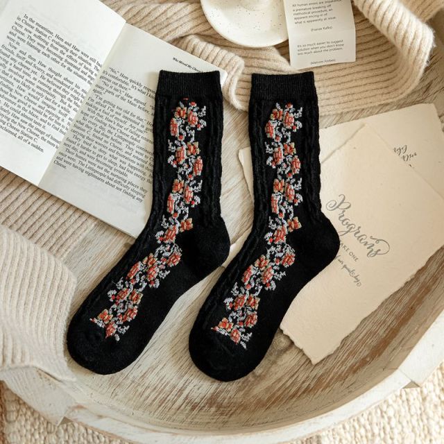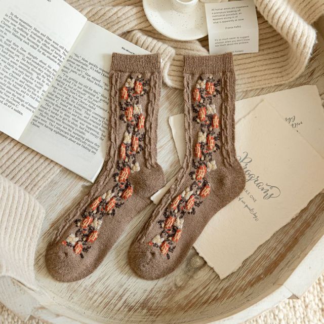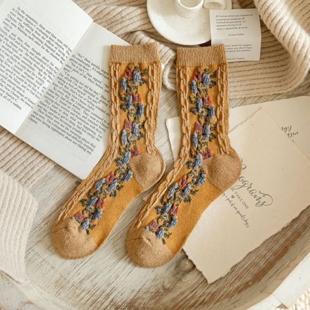 Beautiful women's socks, Good wearing feeling, Irresistible. Fine workmanship and exquisite embroidery, Delicate designs on the cuff make them more elegant. These Arimonz winter thick woman's socks are warm on the feet and they are cute. Crafted to provide a snug fit and an overall cozy feel.