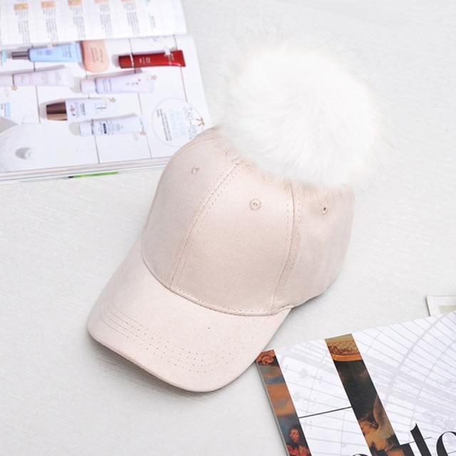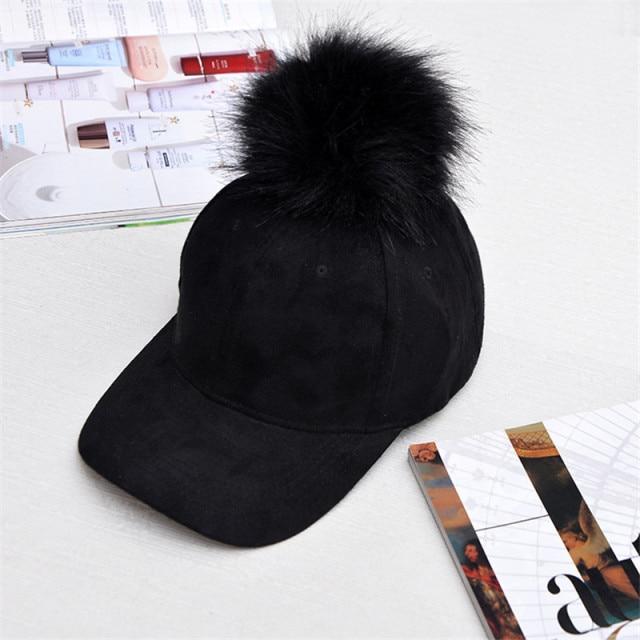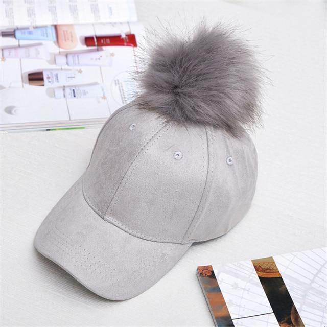 1 *Women Baseball Cap Winter Corduroy Suede Baseball Hat With Pompom